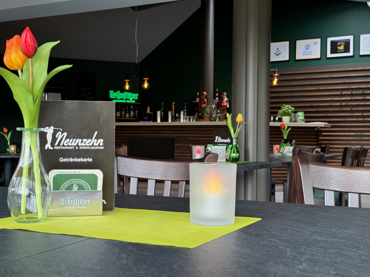 Golfsport und Kulinarik treffen im Neunzehn aufeinander, unser Restaurant ist im Clubhaus des Golfpark gelegen. Wir sind für den Golfer nach gespielten 18-Loch aber auch für den Nichtgolfer, ein Ort der Entspannung und Gaumenfreude.