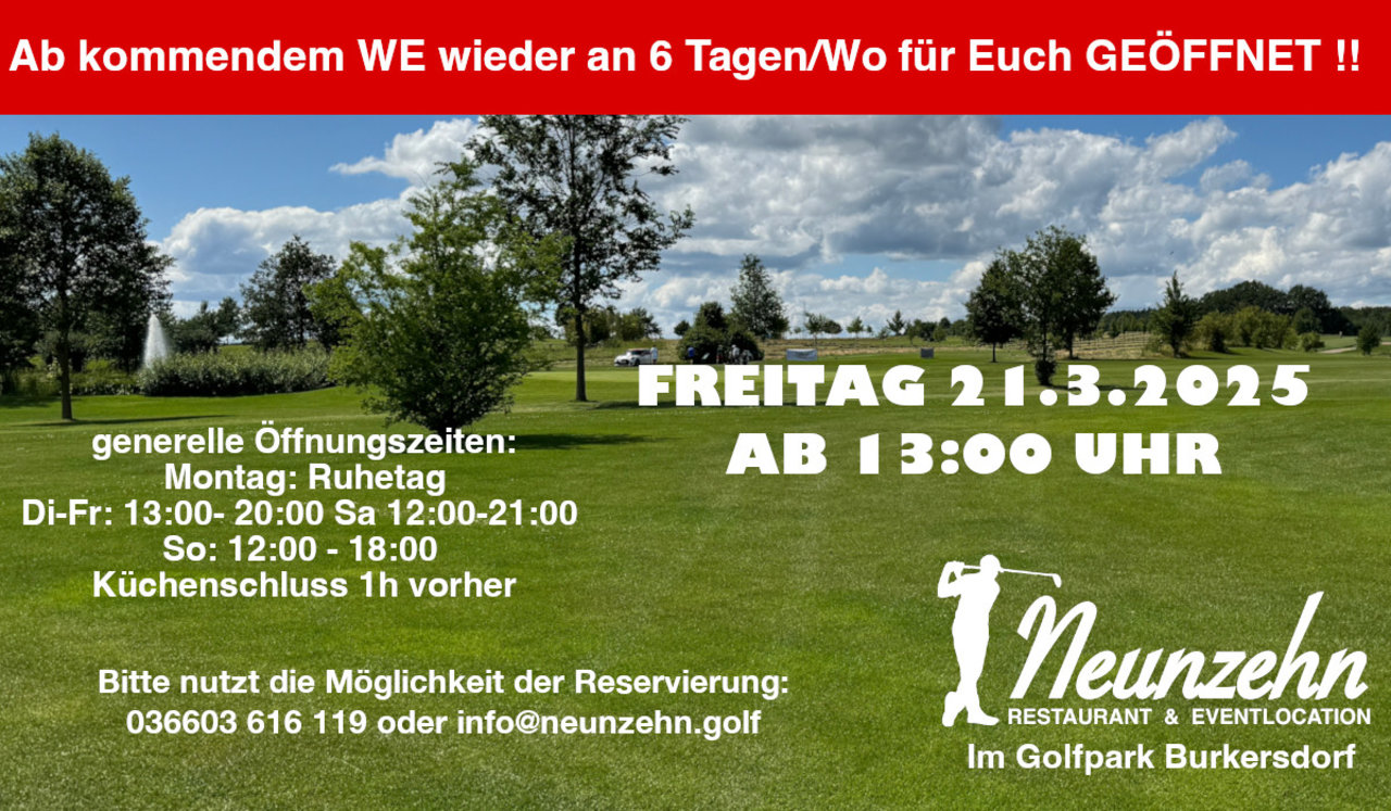 Reservierten Sie sich gern einen Tisch unter der E-Mail: info(at)neunzehn.golf